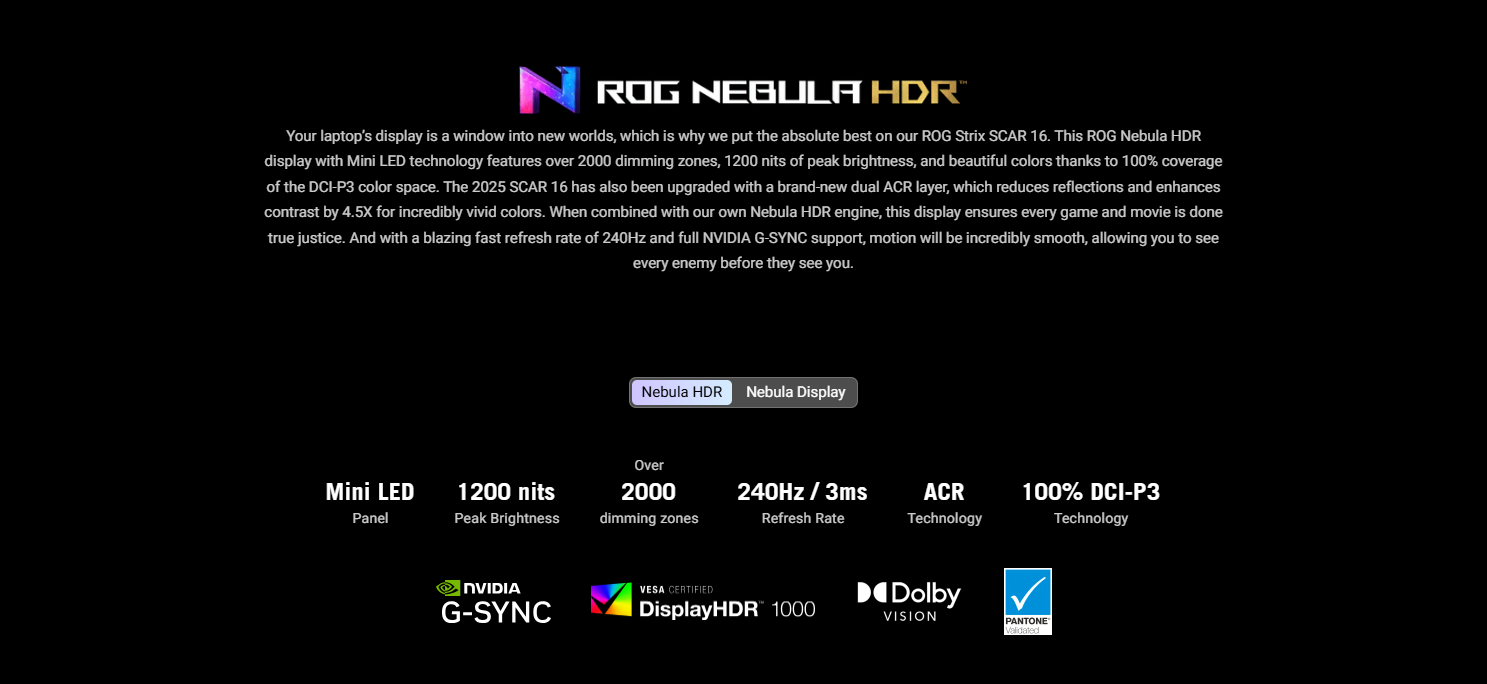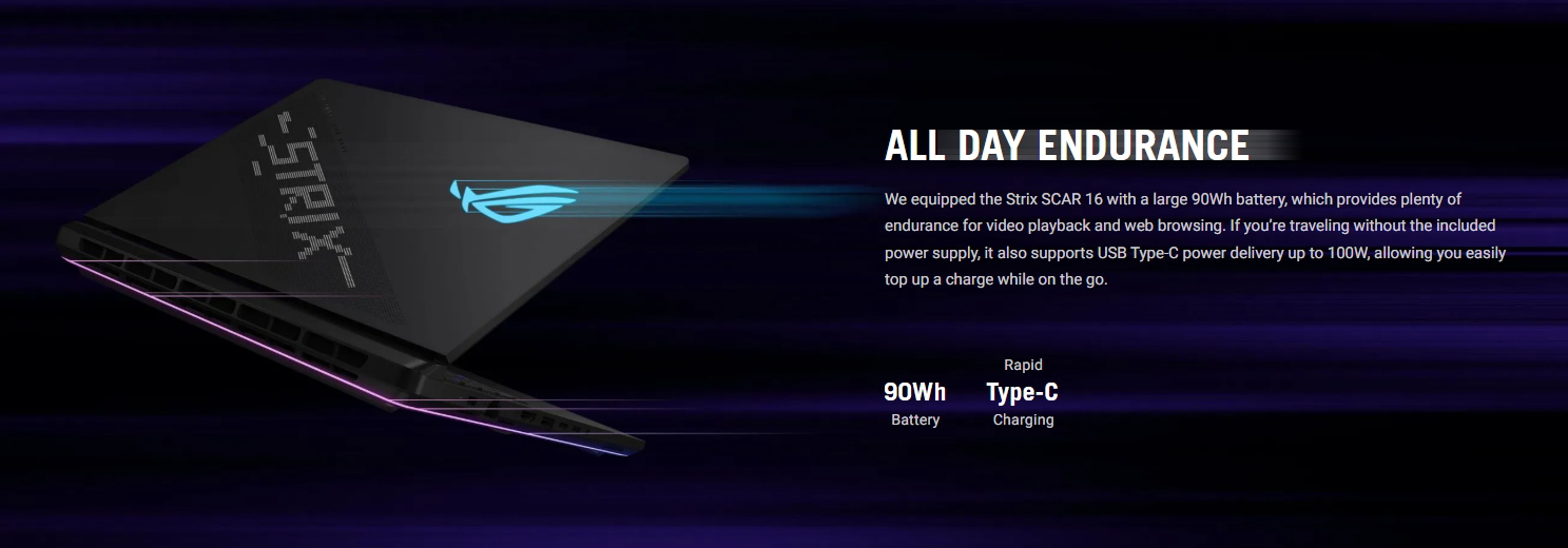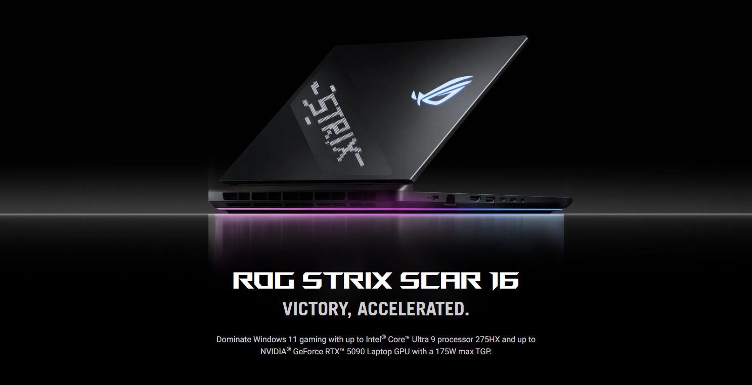 ASUS ROG Strix SCAR 16 (2025) G635LW-S5098 Intel Core Ultra 9 275HX up to 5.4GHz 36M Cash 24-Cores , 32GB DDR5-5600 SO-DIMM, 1TB PCIe® 4.0 NVMe™ M.2 Performance , ROG Nebula HDR Display 18.0" 2.5K WQXGA (2560 x 1600) IPS Anti-glare DCI-P3:100% Refresh Rate:240Hz G-Sync Pantone Validated MUX Switch + NVIDIA® Advanced Optimus Support Dolby Vision HDR :Yes , NVIDIA® GeForce RTX™ 5080 Laptop GPU ROG Boost: 1550MHz* at 175W (1500MHz Boost Clock+50MHz OC, 150W+25W Dynamic Boost) 16GB GDDR7, Full HD Camera with IR , Wireless , Bluetooth , Backlit Chiclet Keyboard Per-Key RGB English (Arabic Optional) . Dos + ROG Gladius III Mouse P514 + ROG BackPack